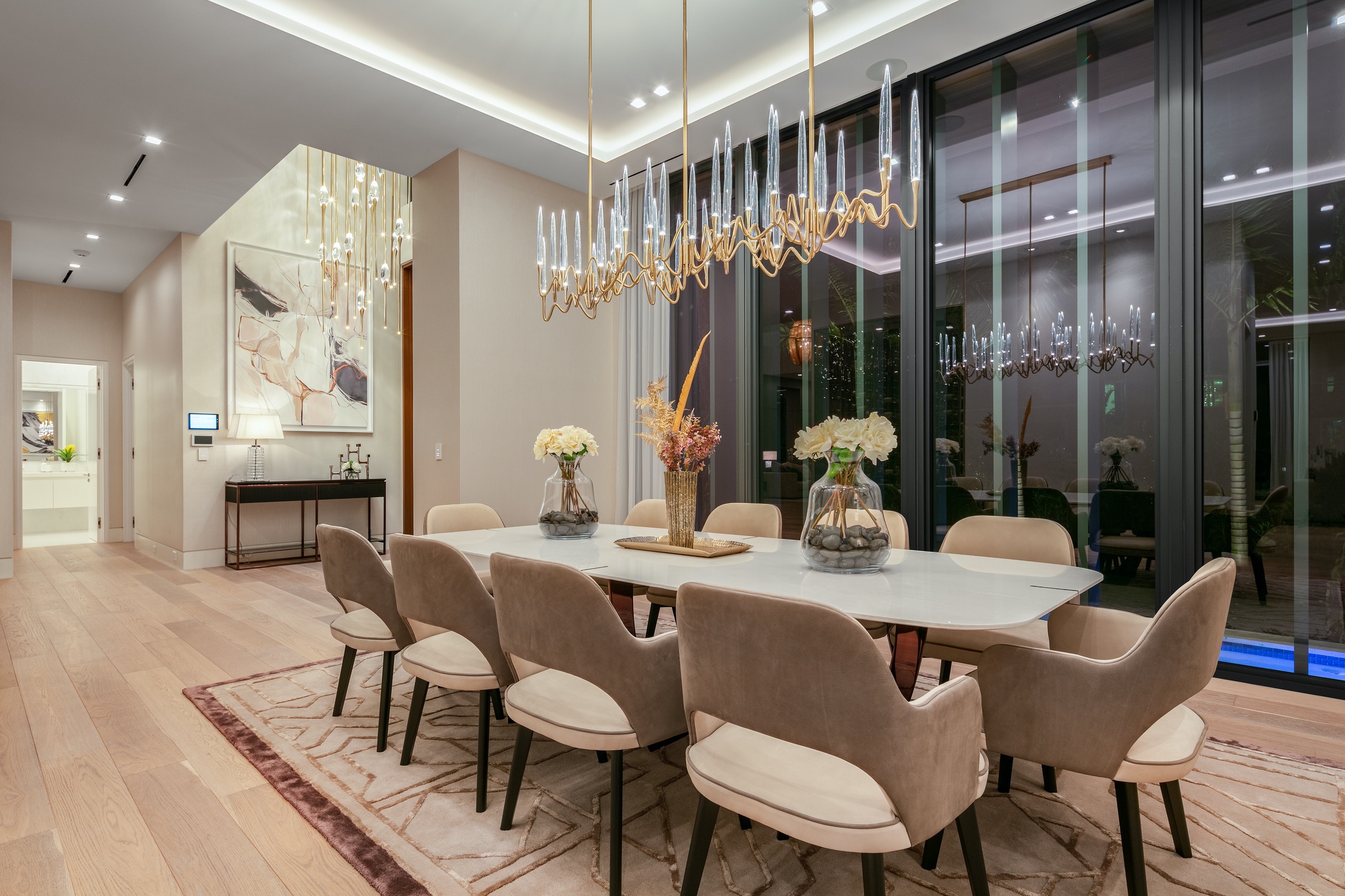 Resort-style amenities include an infinity-edge lap pool, expansive covered terraces, a full outdoor kitchen, and a private dock accommodating a mega yacht. This is contemporary waterfront living elevated to its highest form.