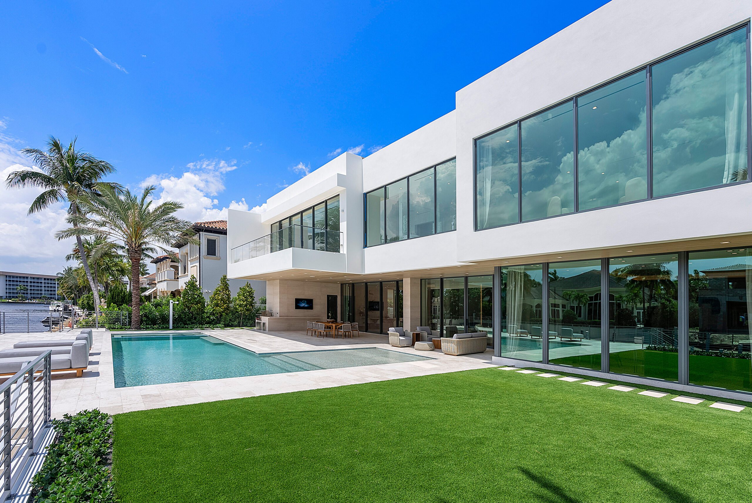 A striking modern waterfront estate in Royal Palm Yacht & Country Club, featuring over 9,500 sq ft of refined living space. Clean lines, floor-to-ceiling glass, and premium finishes define the interiors, while expansive outdoor terraces, a resort-style pool, and summer kitchen offer seamless indoor-outdoor living. A true showcase of contemporary luxury.