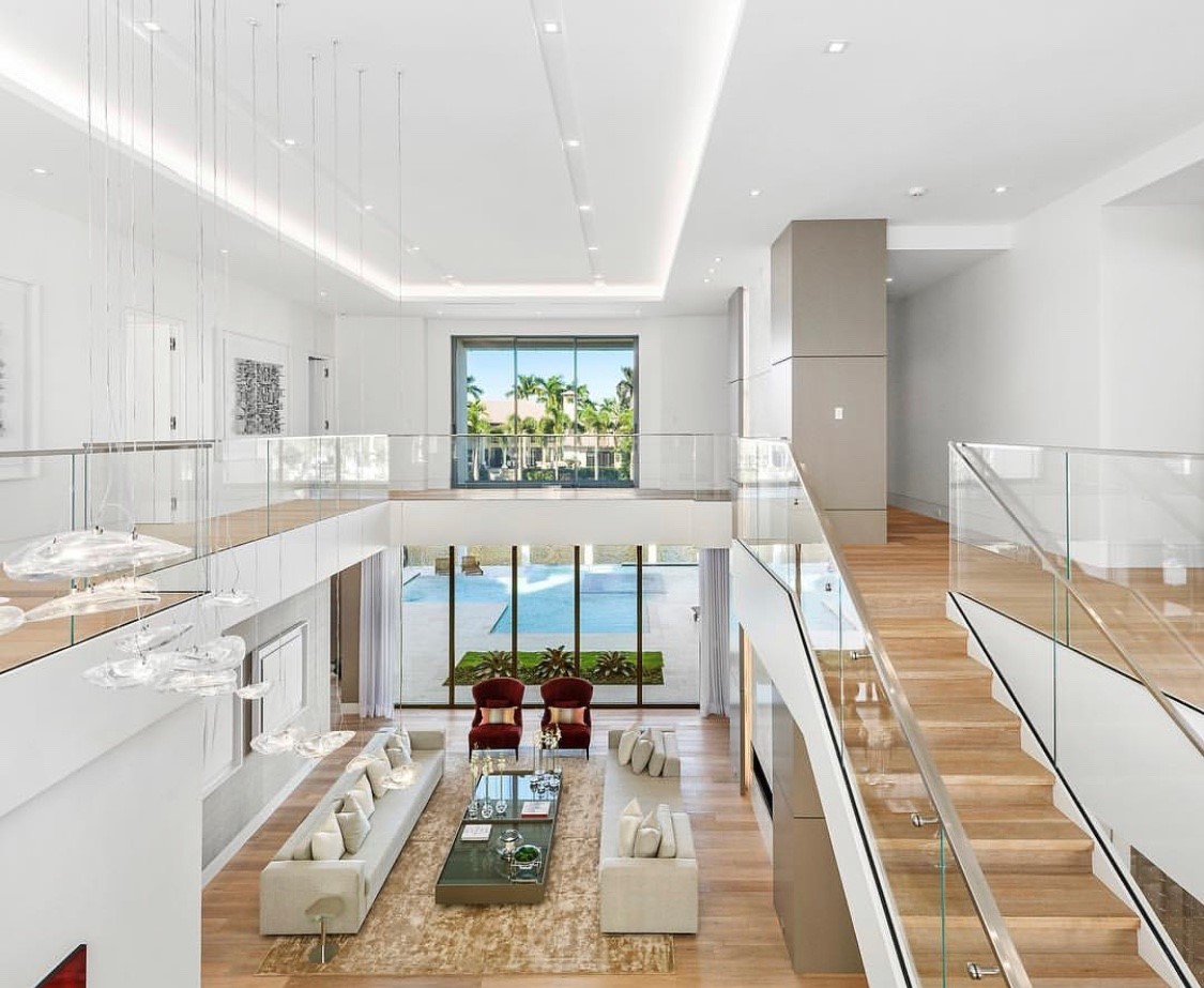 A dramatic floating staircase, glass-enclosed wine display, and designer kitchen elevate the home’s interior, while expansive terraces, a resort-style pool and spa, and a private dock with deep-water access bring the best of South Florida outdoor living to your doorstep. This transitional masterpiece delivers refined luxury with enduring appeal.